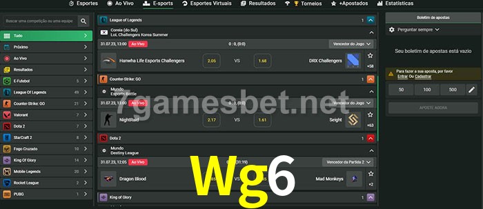 O Wg6 oferece uma grande seleção de opções de apostas em e-sports com probabilidades competitivas